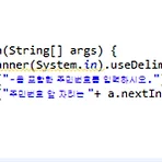 이번 예제는 Scanner 클래스 예제인데요주민등록번호를 입력받아 앞자리만 추출하는 코드 입니다.Scanner 클래스의 메소드인 useDelimiter() 를 사용하여 타이푼(-) 단위로 끊어 출력합니다. 출력결과는 아래와 같습니다.