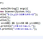 x,y 좌표값을 입력받아 사용자가 설정한 사각형안에 좌표값이 들어있는지 판별하는 프로그램 입니다. 출력값은 다음과 같습니다.